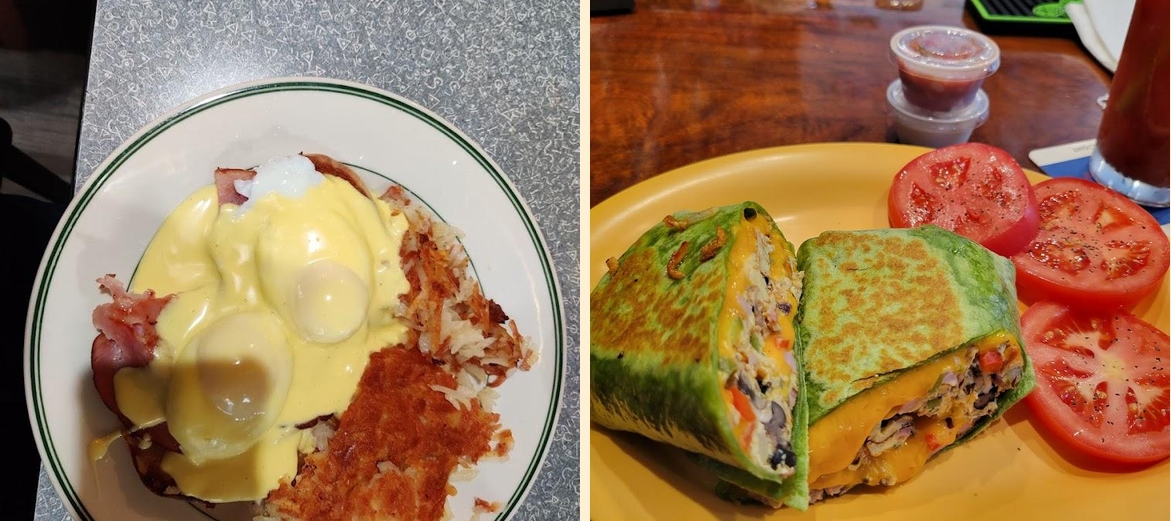 Definitely try the 3 Dollar Pancakes for breakfast. The Classic Burger is a top choice for lunch. For dinner, the Fish & Chips will not disappoint. Don't forget the Cheffrey for a unique breakfast twist!